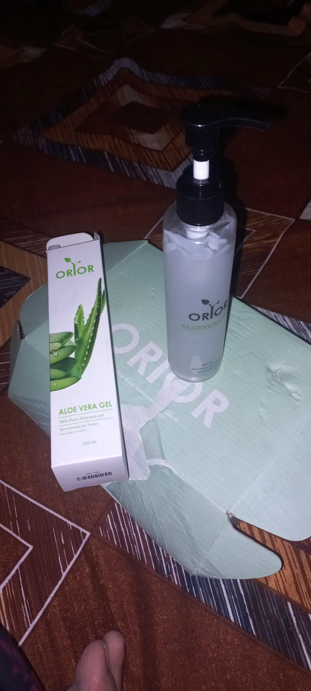 Take desired amount of Orior’s Aloevera Gel and massage it into the skin